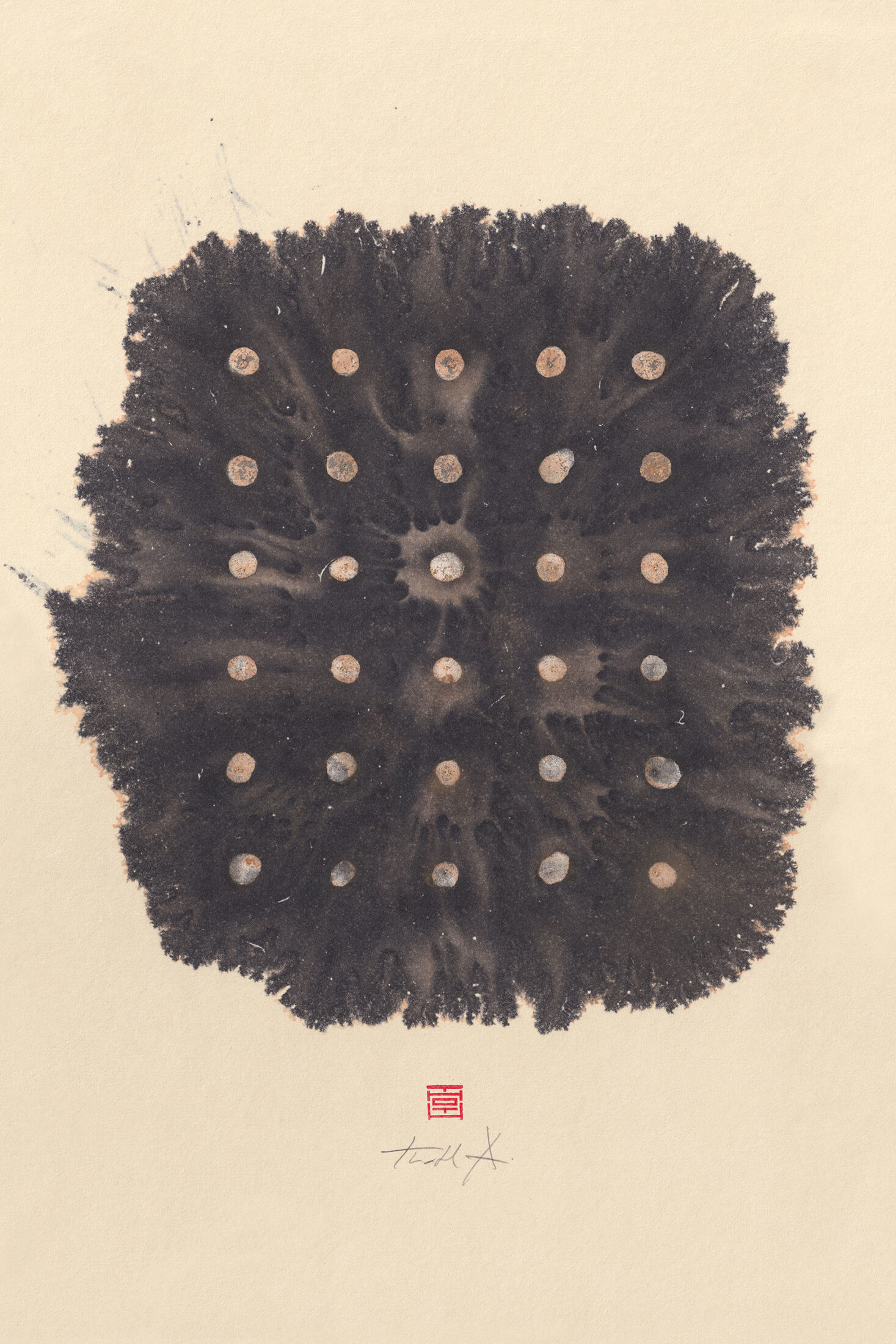 Thoth Adan is a Swiss-born, Austrian-based artist who primarily works with sumi ink and mineral pigments on Japanese washi paper and wood panels. His paintings, abstract, minimal, and gestural, draw inspiration from Eastern philosophies and aesthetics as well as Western art movements such as Abstract Expressionism and Post-Minimalism, merging precision with introspection.