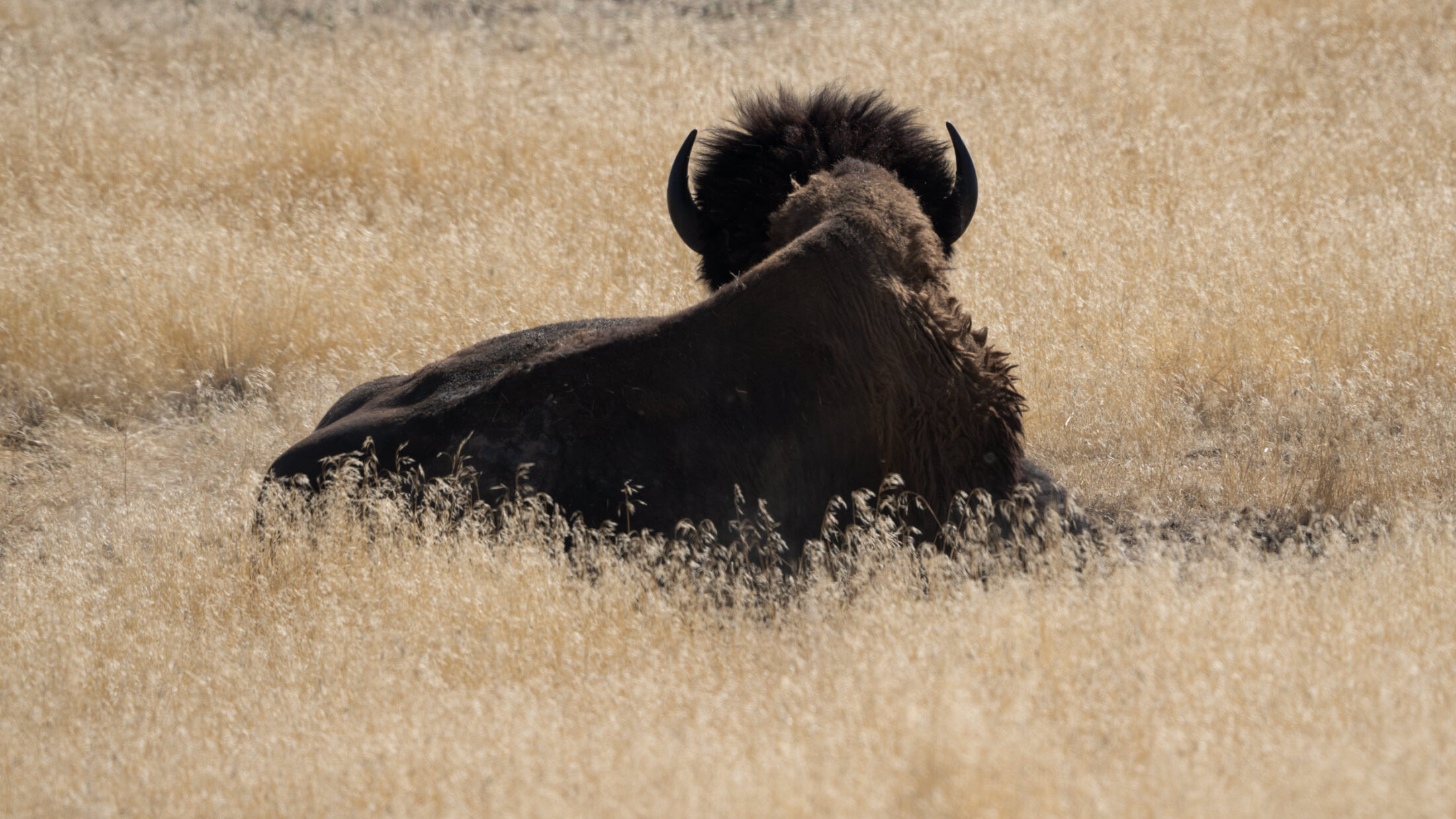 The bison’s muscularity is sculpted and accentuated by the narrowing of their hips down to their haunches. It is a shining topography against the monotony of the prairie. The swishing of tails and the sound of wind weaving grasses into a tapestry can hardly be differentiated.