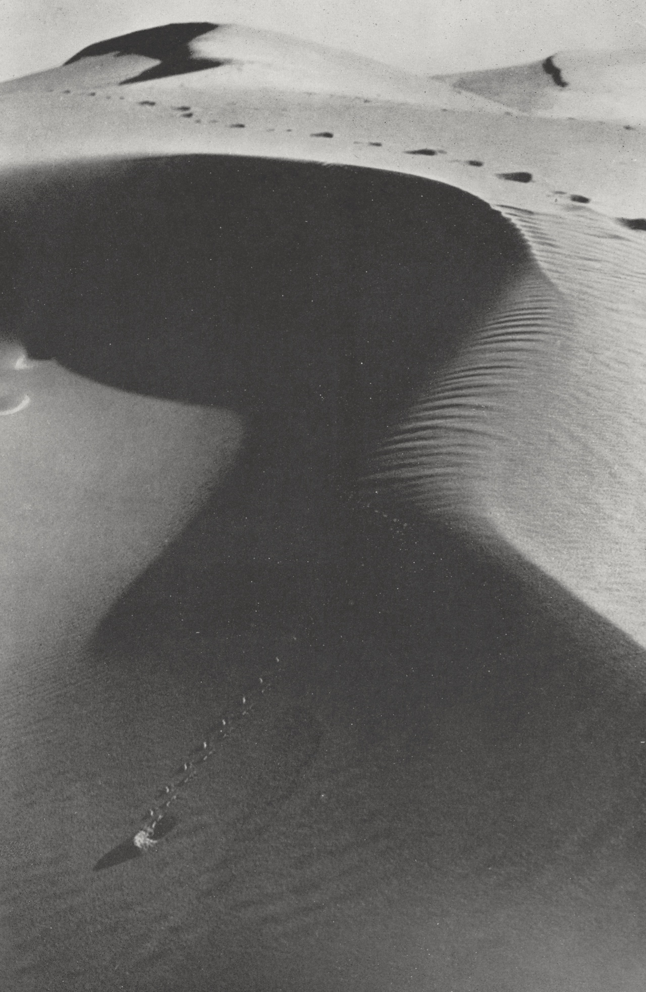 It feels like walking in snow, one step forward and a half step back, the same unsteady shift and slide. But rather than snow, beneath my feet are millions of tons of sand. This powdered quartz mountain moves—not just its skin, displaced by every step, but its whole enormous mass, by up to thirty feet a year, perhaps a tenth of an inch a day, inexorably rolling east. That might sound slow compared with the speed of a human life, but so does sea level rise. So do melting glaciers.