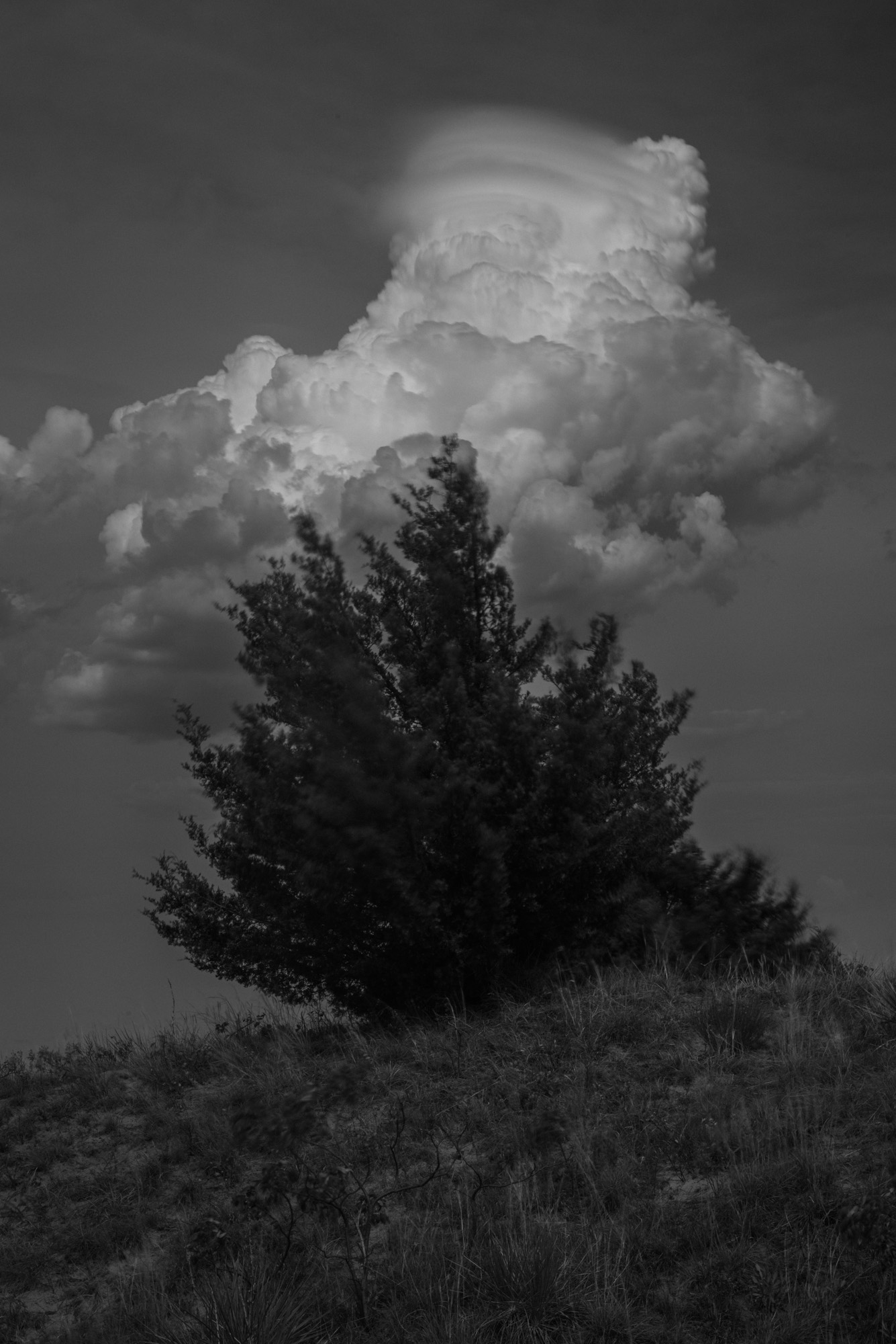 Fire is grasslands’ long-standing cure to forestation. Whereas grasses contain the majority of their biomass belowground and easily survive the sweep of flame, young trees do not. But once trees like cedars have time to get established, they become much harder to clear, with flame or otherwise. After a number of deadly and catastrophic fires in the West around the turn of the nineteenth century, smoke spotted on the horizon became cause for dread. With white settlement, land management came to include fire suppression. The dominant mindset in the Sandhills today is that wildfire will strip away vegetation and return the dunes to a mobile state—one of the range manager’s greatest fears. But following extreme drought conditions and the worst wildfire year on state record in 2012, the Fairfield Creek Wildfire burned through nearly thirty thousand acres of the Niobrara Valley Preserve. The recovery of the dunes was studied: burned areas returned to the same level of vegetation as unburned areas, and dune stability was maintained, suggesting that the greater risk to the Sandhills’ integrity in the near future is not that the dunes will revert to sand, but that they will transform into a red cedar forest.