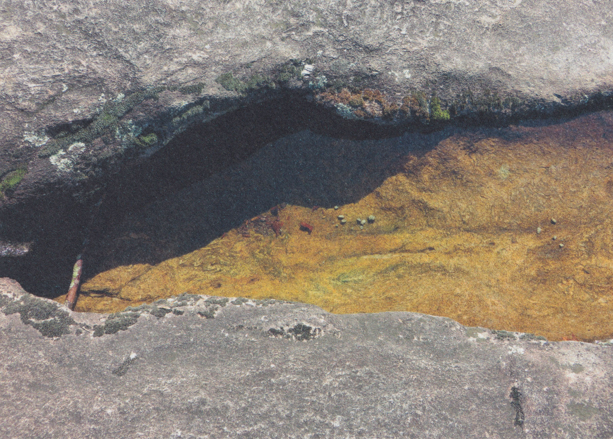 In pockmarks on the whale’s back, rain accumulates in puddles. These depressions were etched into the rock by millennia of slightly acidic rainfall. Most puddles drain or evaporate within days, but a few hold water throughout the winter and spring.