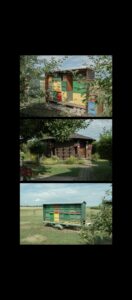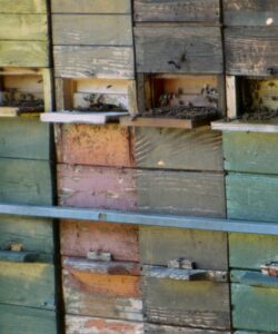 n the brightly painted beehives