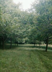 to a family orchard in the forested