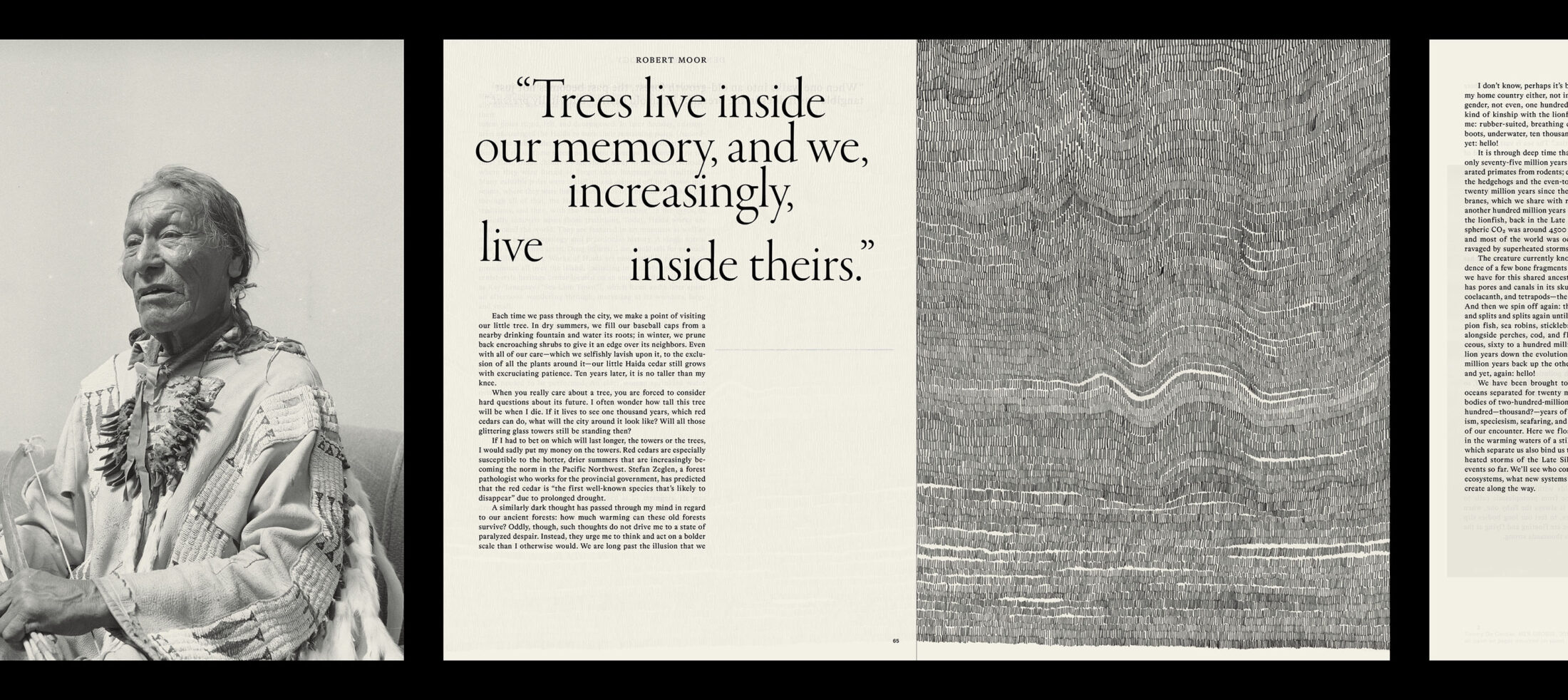 Robert Moor is a writer and journalist based in British Columbia. He is the author of On Trails, winner of the National Outdoor Book Award, the Saroyan International Prize, and the Pacific Northwest Book Award. A graduate of Brown University and the Arthur L. Carter School of Journalism at NYU, he has written for The New Yorker, New York Magazine, The New York Times, GQ, Harper’s, Granta, Outside, n+1, and other publications. He is currently working on a book entitled In Trees.
