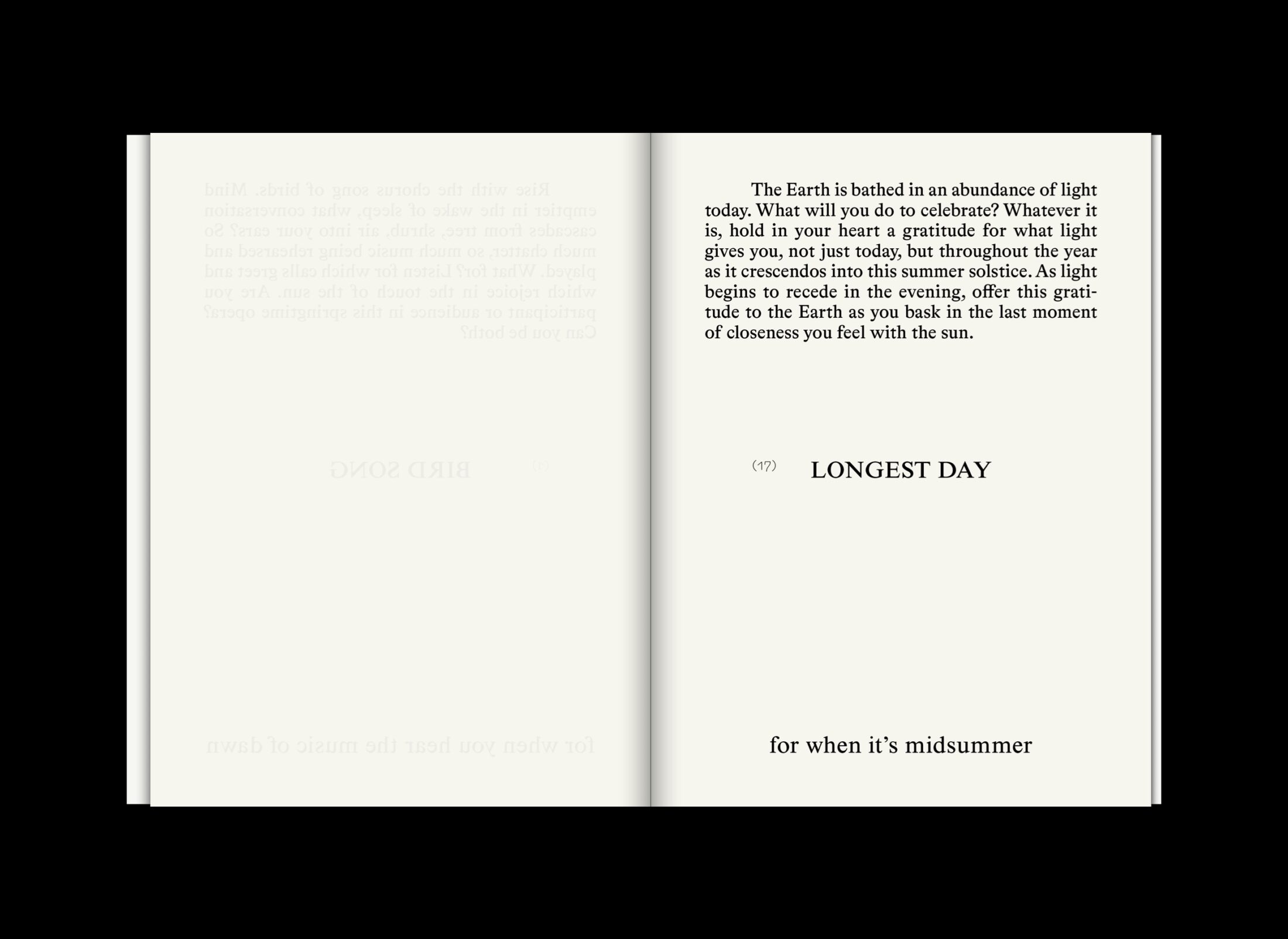 Within each moment of every day is an invitation to attune to the call of the seasons. Inspired by the Japanese tradition of kigo, this collection of fifty practices by Emmanuel Vaughan-Lee and Lucy Wormald offers simple ways to become attentive and respond to the myriad ways we can experience the subtle expressions of the seasons that are often overlooked within the familiar divisions of summer, autumn, winter, and spring. These simple prompts engage the cycles of breath, the inner and outer senses, playfulness, and physical immersion in the seasons’ many offerings, bringing body and heart into a direct experience of a sudden downpour of rain, the sound of frogs, the presence of too much smoke, a day long with light.